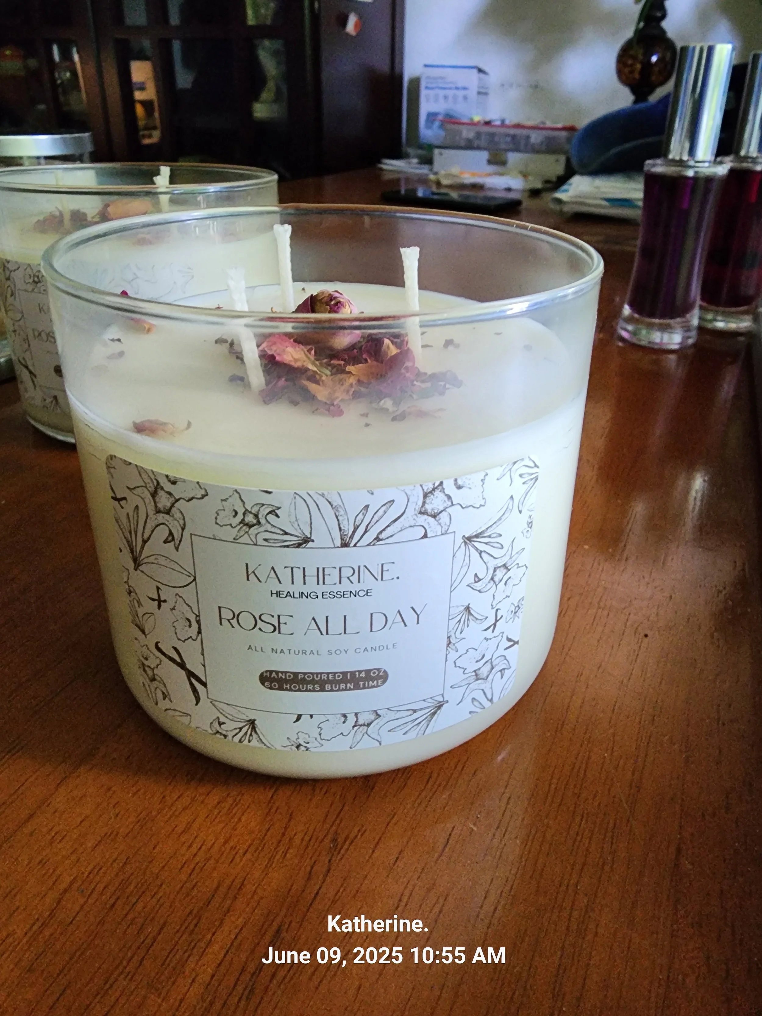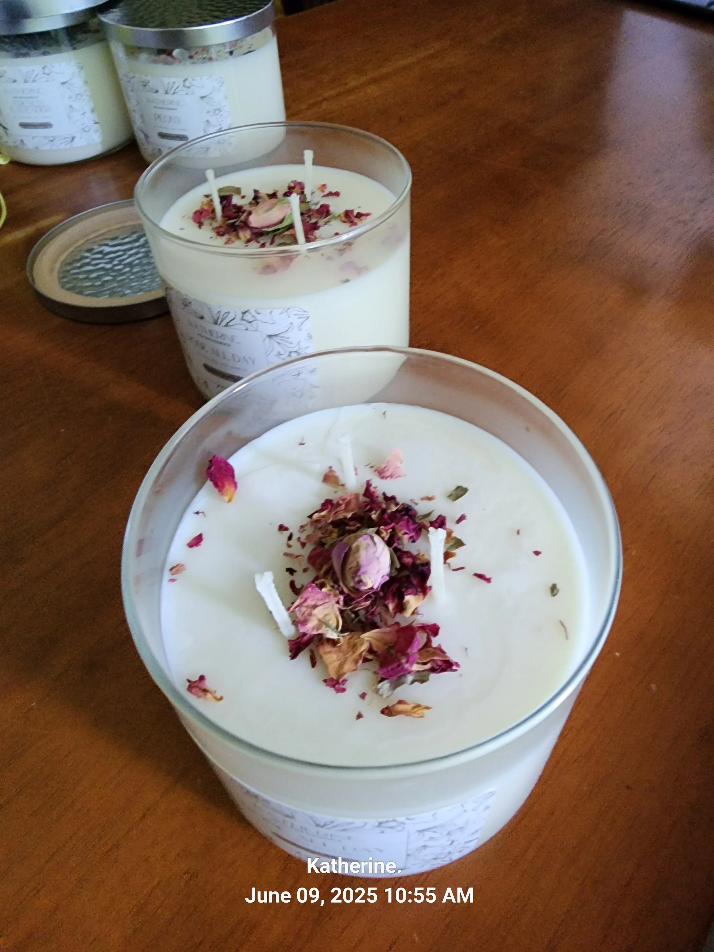 This candle is Rose Fragrances all the way and a dusting of rose petals.